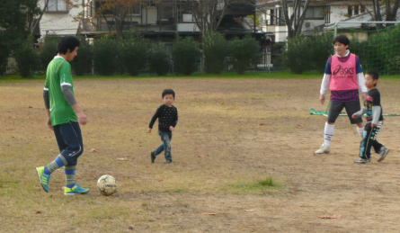 「サッカーするか?」と、声をかけたら おっさんたちの中に
