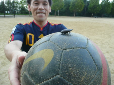 ボールの上に 虫が乗ってた。