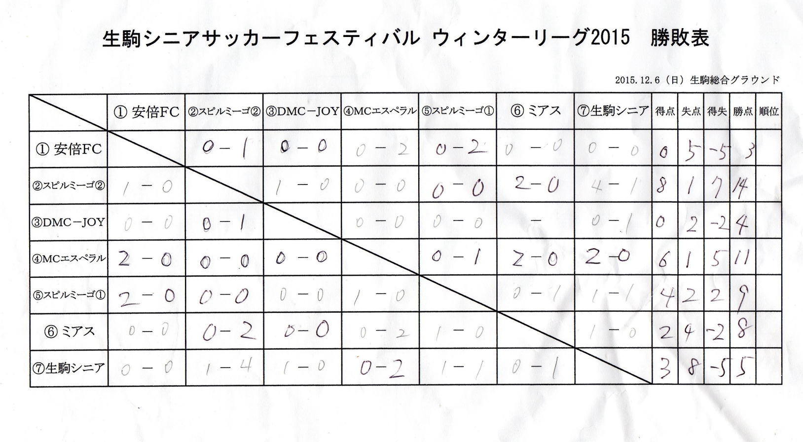 2015年12月6日(日) 生駒総合公園グランド