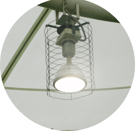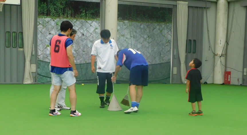 照明灯にボールが当たり ガードの錆が落ちてきました。 ほうきとちり取りを借りて 一時休戦です。