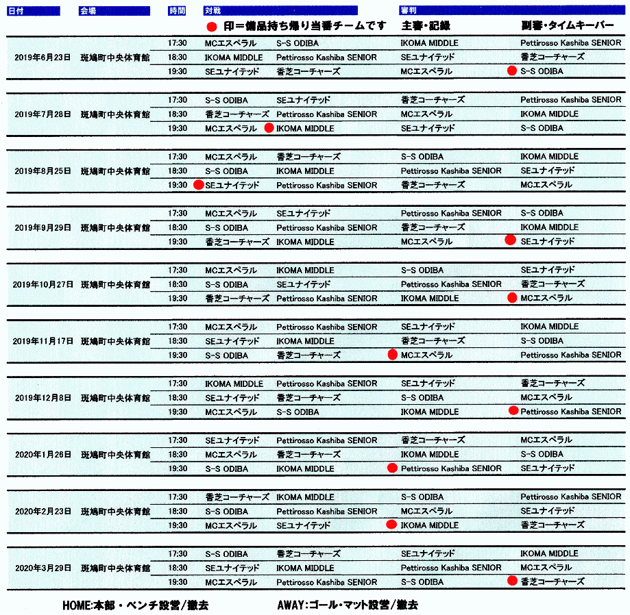 2019年度 シニアリーグスケジュール