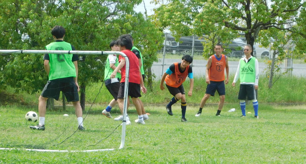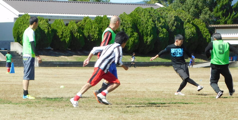まほろば 4名 コンパニェロ 2名 若者 3名 父兄飛入り 1名 合計10名で 5対5をしました。 急に寒くなりましたが、みんなの動きは 良かったですよ。 (子供たちには、負けますが・・・。)