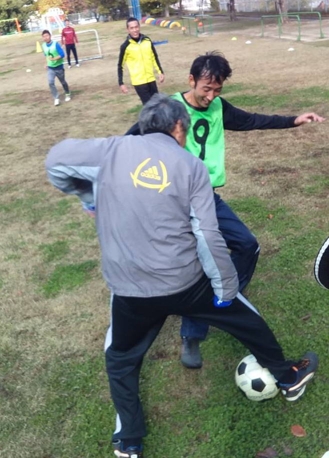 2022年が始まりました。 今年も楽しくやりましょう。 初蹴りの参加は、まほろば 4名、 コンパニェロ 4名 若者たち 5名 で、合計13名でした。 いつものように、若者5名と シニア8名で ハンデキャップマッチをしましたが、途中から 年齢分けをして 半分に割って ゲームをしました。