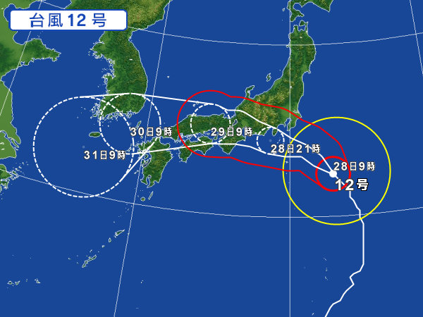 暑いわ、雨降るわ、揺れるわで 散々な夏ですが 次の禍は 台風のようです。 今回は 珍しく 東からやってくるようです。 それが どういう事かは知らないけど、いつもと違うのは 気になるから みんな 気を付けてね。 大騒ぎしないで こっそり通り過ぎてほしいものですが 台風は 目立ちたがりのようですね。 最短距離で日本を横断して ロシアか北極へでも抜けてくれたら・・・・、って ロシアも困るか・・・。 日曜日は 朝から 上牧第3小学校の予定だけど たぶん今夜から 雨になるんでしょうね。 さて、ごちゃごちゃと 忙しくなりそうな夏です。