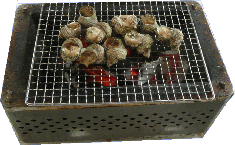 サザエ〜焼き鳥〜焼肉〜シシ肉〜などを焼いていました。