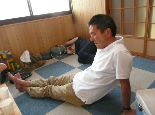 私は、昨日のサッカーの筋肉痛に 耐えながら